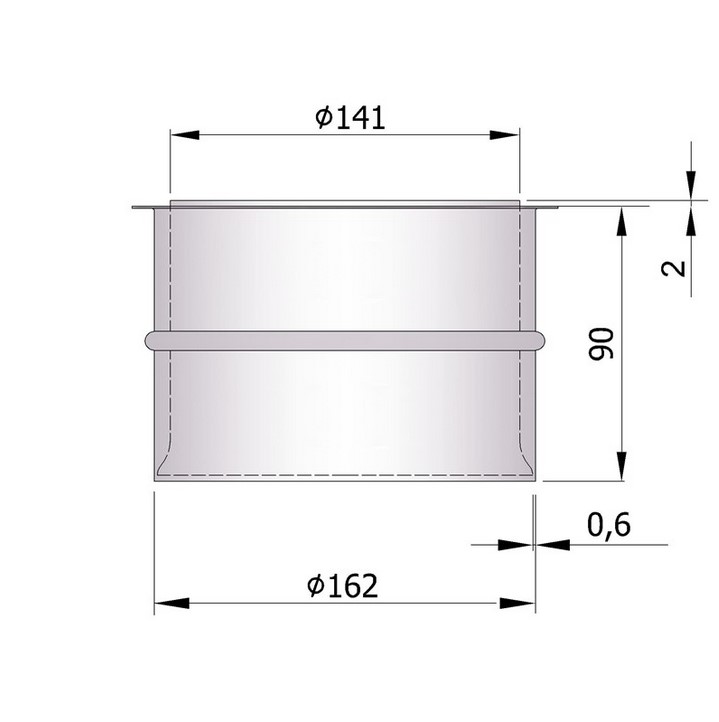 Doppelwandfutter für Rauchrohre aus 2mm Stahl mit 150mm Nenndurchmesser.