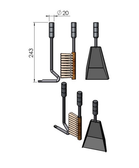 Das Kaminbesteck mit seinen praktischen kompakten Maßen (Höhe ca. 245mm) kann natürlich auch für andere Kaminofen Modelle verwendet werden.